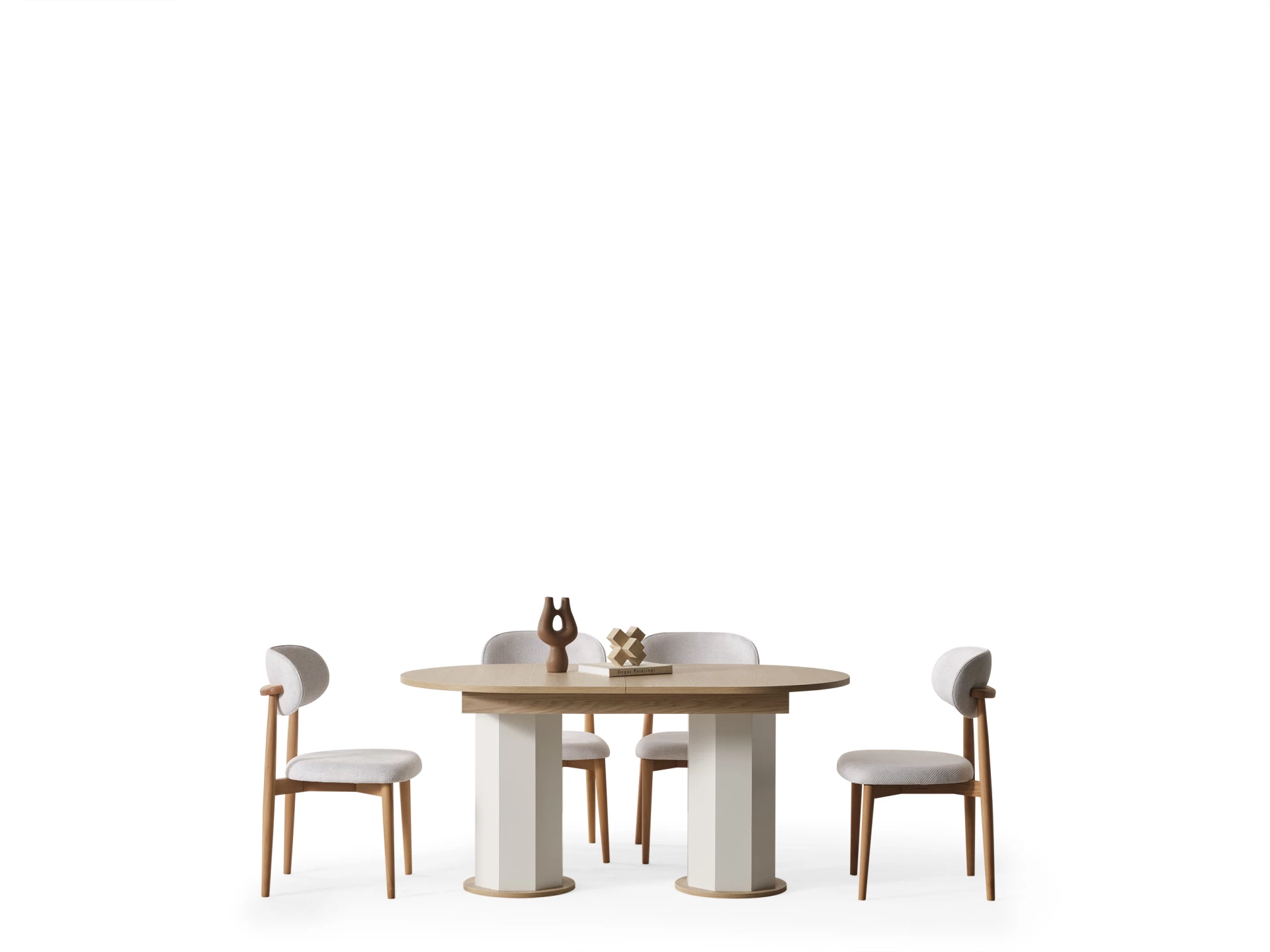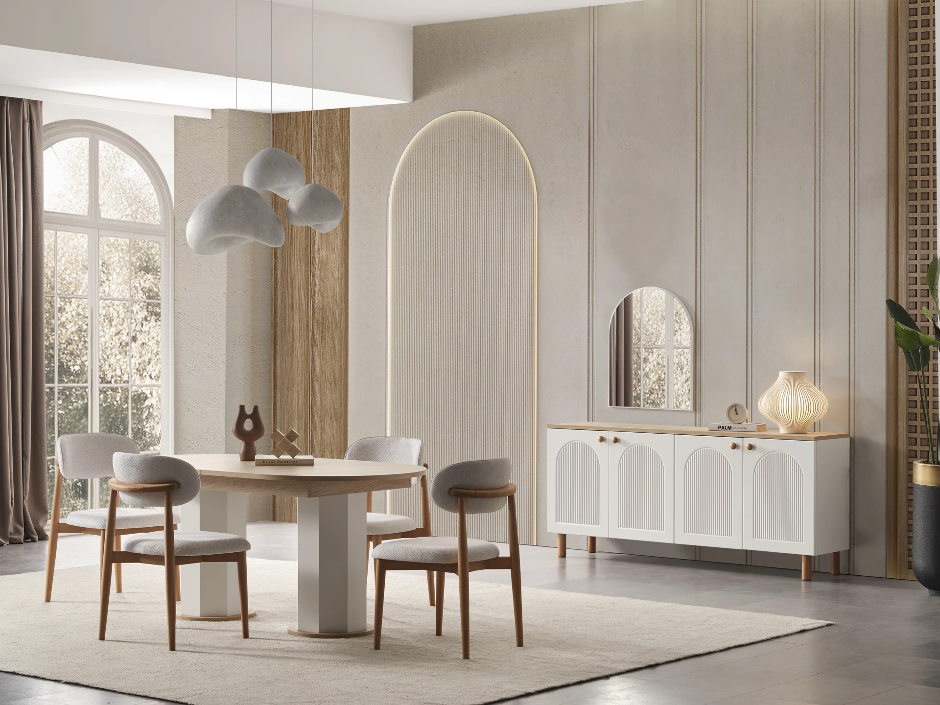 Modern çizgilerin ve minimalist detayların hakim olduğu Nergiz, estetik kaygıları ve fonksiyonelliği bir araya getirir. Geniş ve rahat yemek masası, ailenizin ve misafirlerinizin rahatça oturabileceği ergonomik sandalyelerle tamamlanır. Her detay özenle düşünülmüş olup, mekanınıza hem şıklık hem de fonksiyonel kullanım alanı kazandırır.